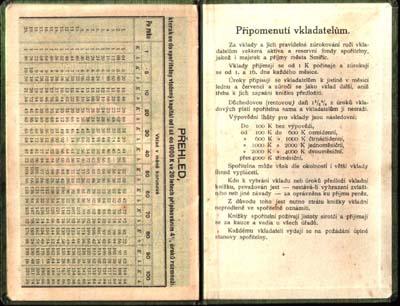 2. každému vkladateli vydá se při prvním vkladu za poplatek ustanovení řiditelstvím, spořitelní knížka nebo spořitelní list vkladní - podepsaný oprávněnými zástupci spořitelny u připojené pečeti ( razítka ) spořitelny. Správnost vkladu nebo výplaty potvrzují svými podpisy pokladník a likvidující úředník ústavu.