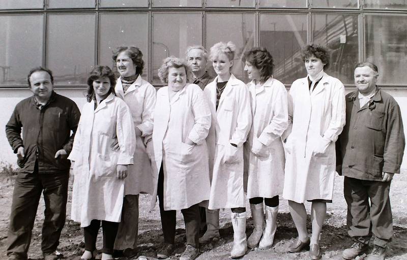 Pracovníci likérky VČ lihovaru Smiřice (asi 1973 - 4)