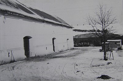 Pohled k bráně dvora v Holohlavech. Hol. kronika + Část holohlavského dvora. Hol. kronika.