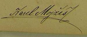 V první třídě vyučovati bude řídící učitel pan Karel Mojžíš ( poprvé psaný i podepsaný s „J“ – pozn. P. ), a ve druhé třídě ml. učitel František Langer.