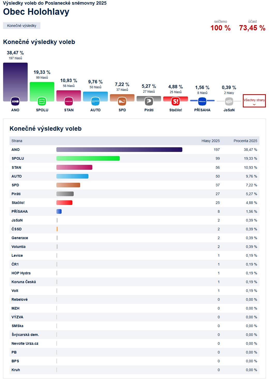 04.10.2025 - výsledky voleb v Holohlavech (zdroj:novinky.cz)