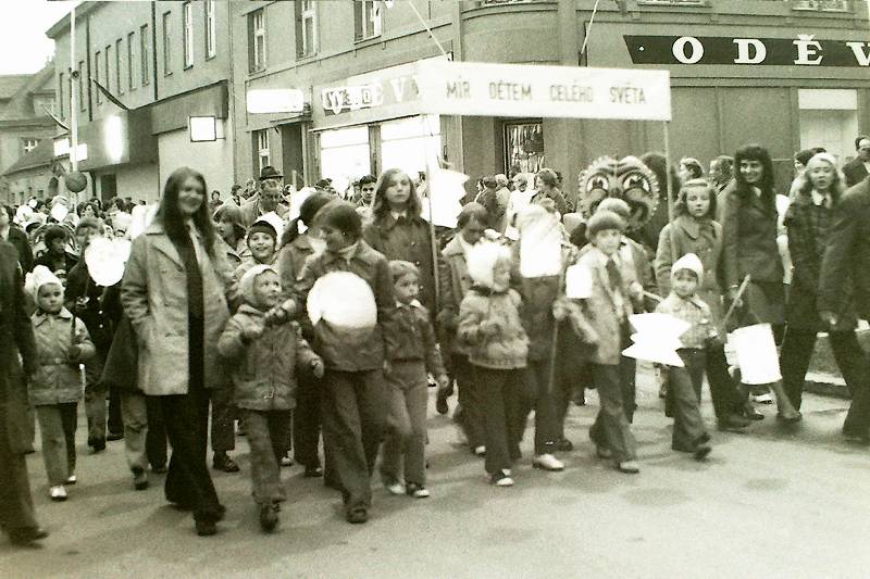 V době, kdy se občané scházeli na seřadišti průvodu, k nádraží, vysílal rozhlasový kolektiv pásmo o úspěších budovatelské práce ve městě, místních závodech i organisacích.