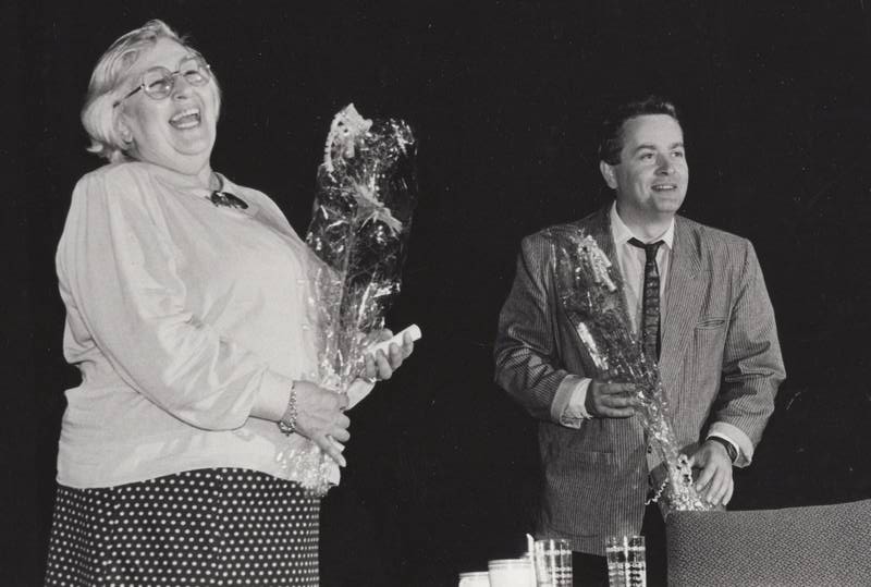 Pořad pro starší občany řídil Jan Pixa, vpravo Stanislav Procházka st. 13.3.1990