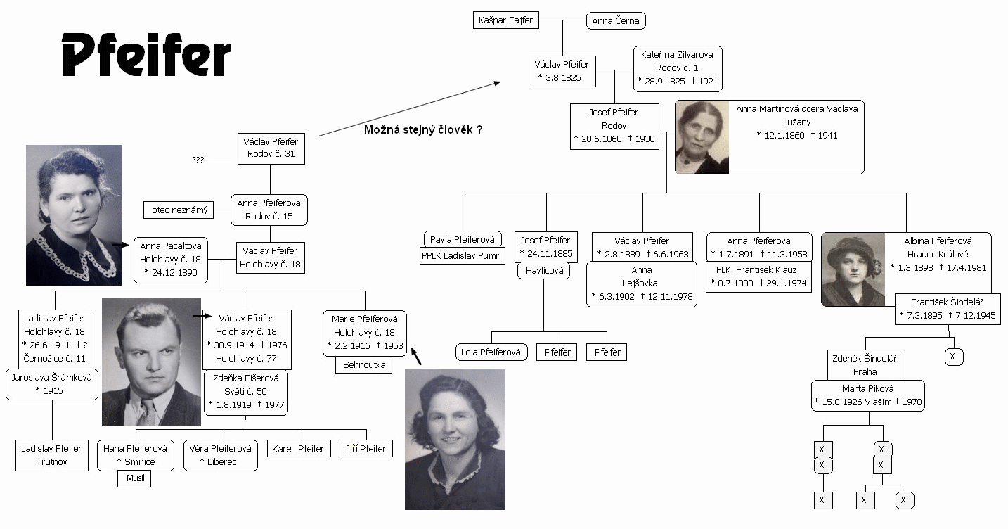 Zdeněk Šindelář.mi poslal pravou část rodokmenu Preiferových a podle informací od paní Musilové jsem sestavil levou část ( teď je potřeba je ještě propojit :-))