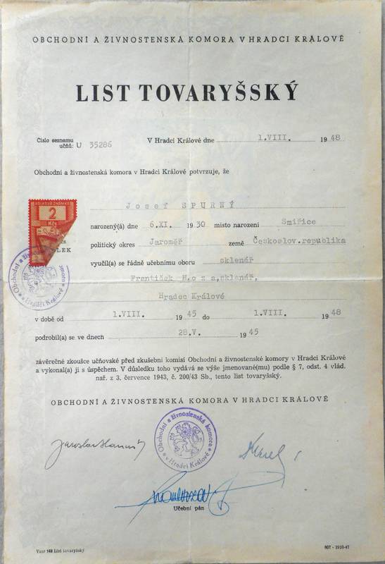 h1/ Spurný Josef Bohumil *06.11.1930 Smiřice sklenář čsl. †28.02.2017 HK se oženil 19.02.1972 Jaroměř