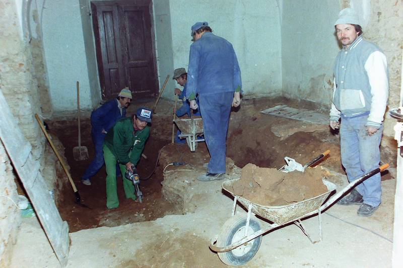 Kaple - rekonstrukce podlahy v části, kde je nyní umístěn model Smiřic.
