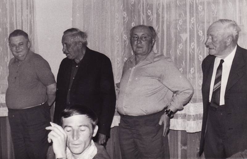 Zleva: Pikola, Knap, zprávu čte Mirek Míl, vzadu ?, ?, Marek