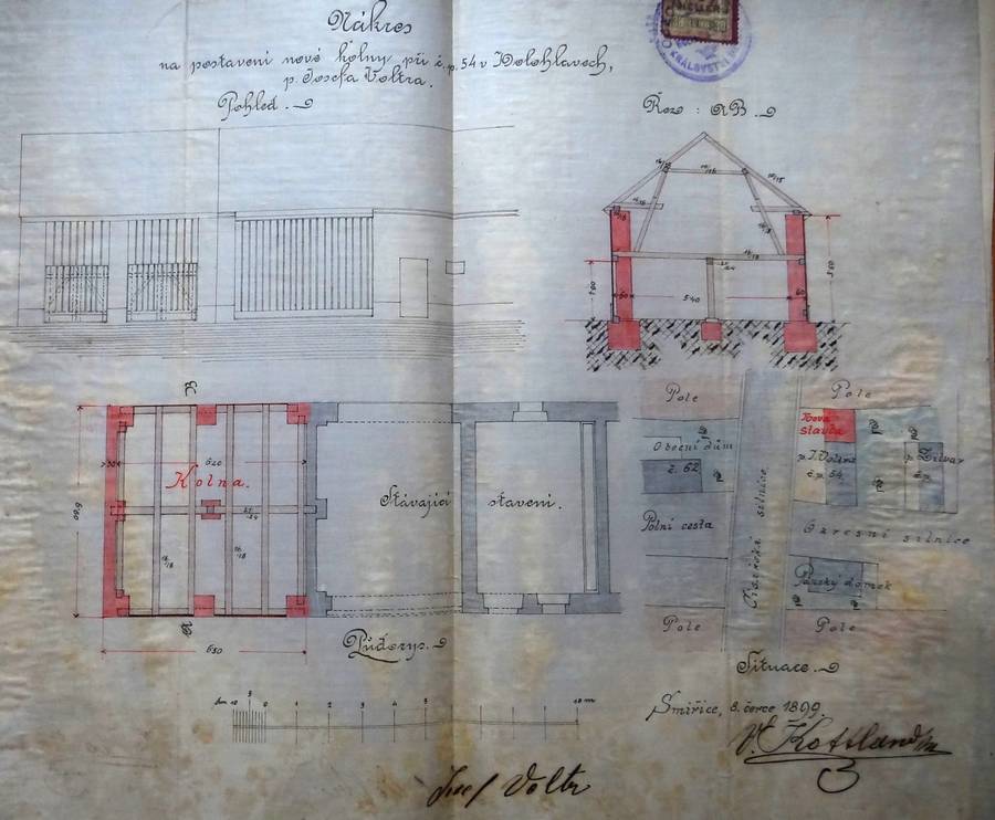 Stavbu vésti a k ní dozor míti bude pan Václav Volt stavitel ve Smiřicích n./L.