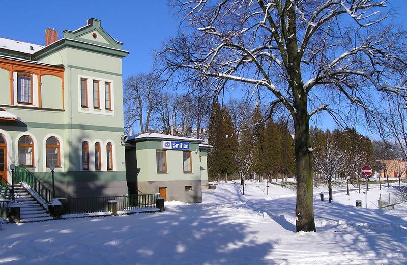 Prostor před nádražím ve Smiřicích. - klikni pro zvětšení. 23.3.2020
