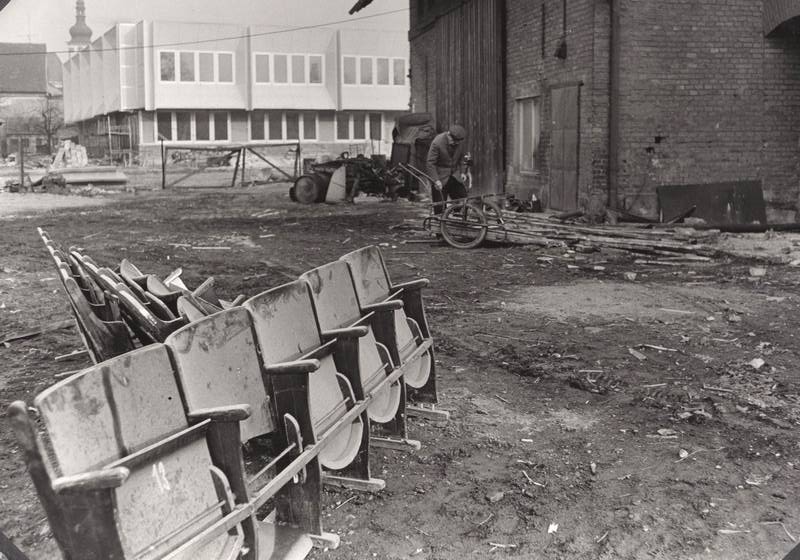 Smiřice - Palackého ulice, bourání domu čp. 13 a stodoly