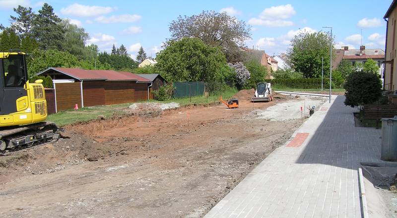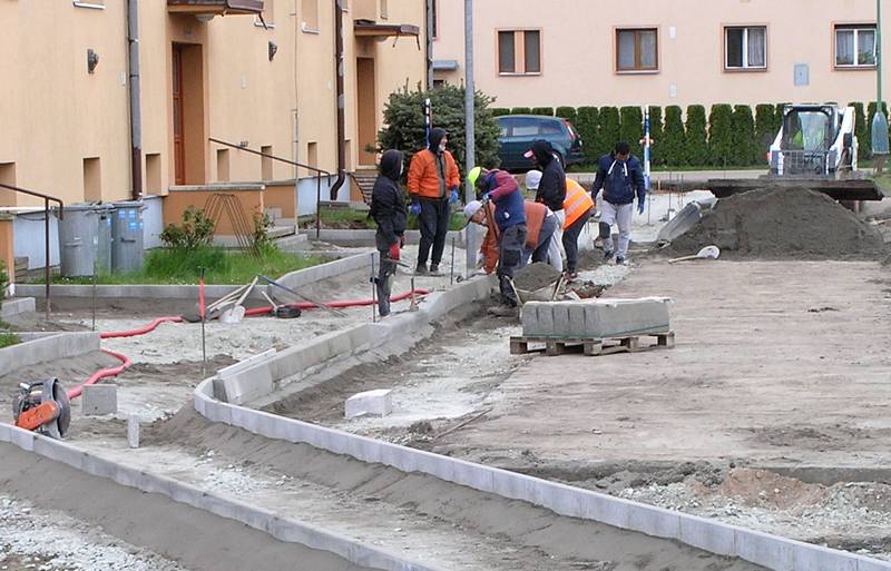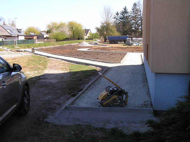 Parkoviště u bytového domu je skoro hotové. 17.4.2020