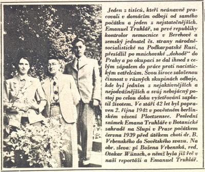 Hluboce zarmoucena sděluji Vám, že můj statečný Bedřich, dne 6. III. t.r. v den svého svátku, o 13. hodině mne navždy opustil. Na oltář vlasti dal to co měl nejcenějšího – život.