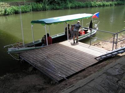 Překvapivě málo lidí mělo zájem o půlhodinovou jízdu po Labi. Dnešní den jízdenka stála 40 Kč. + Název lodi Smiřice.