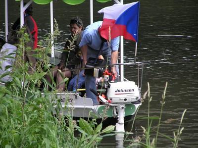 zleva: částečně zakryt a u kormidla je p. Kostkan z Hradecké paroplavební