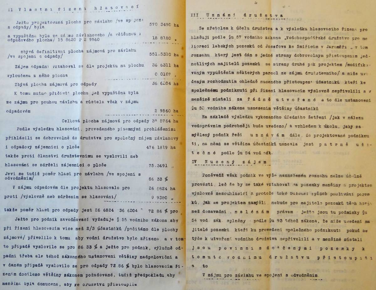 V zájmu pro závlahu ve spojení s odvodněním, lidé z katastrů Jaroměř, Jezbiny, Semonice, Černožice, Holohlavy, Rasošky, dole Vlkov