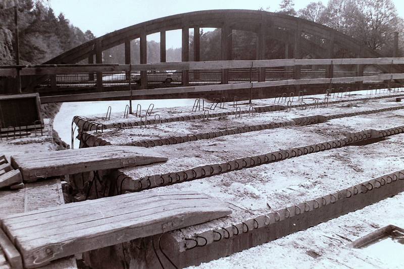 Staveniště mostu v pohledu od starého mostu. říjen 1979