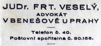 JUDr. Veselý, člen senátu Národního shromáždění, si také dopisoval se Smiřicemi: